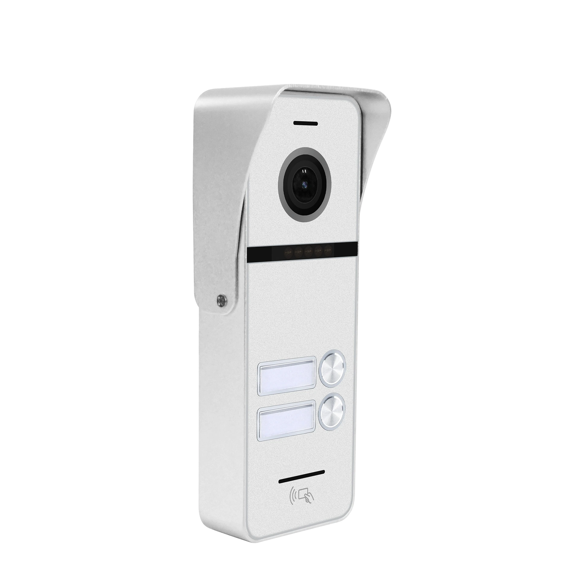 Panou de apel pentru videointerfon pentru 2 abonați, cu cameră video multifuncțională de înaltă rezoluție 2 MP și un unghi larg de vizualizare de 148°, echipat cu cititor și controler pentru carduri de acces Mifare.