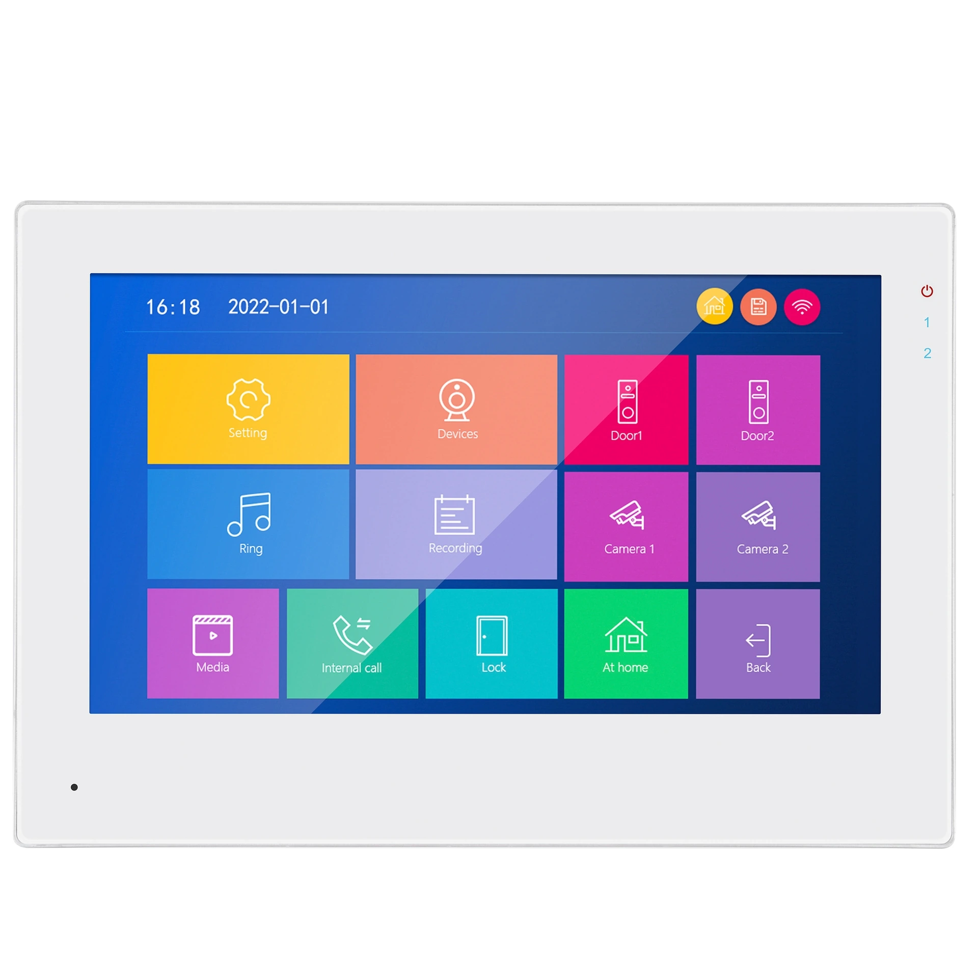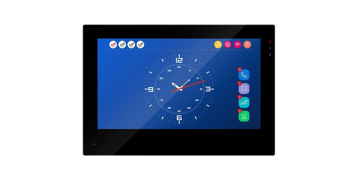 • În modul așteptare: screensaver cu calendar, ceas, mod rame foto și afișarea video de la un canal selectat (cameră video sau panou de apel).